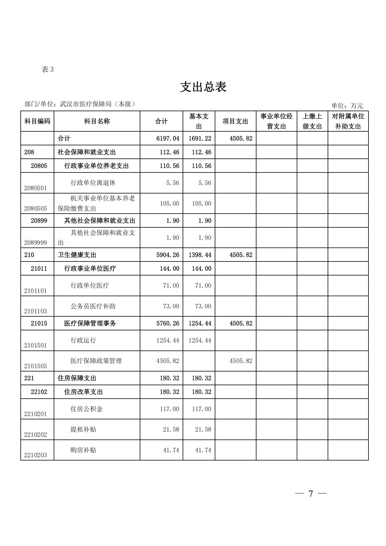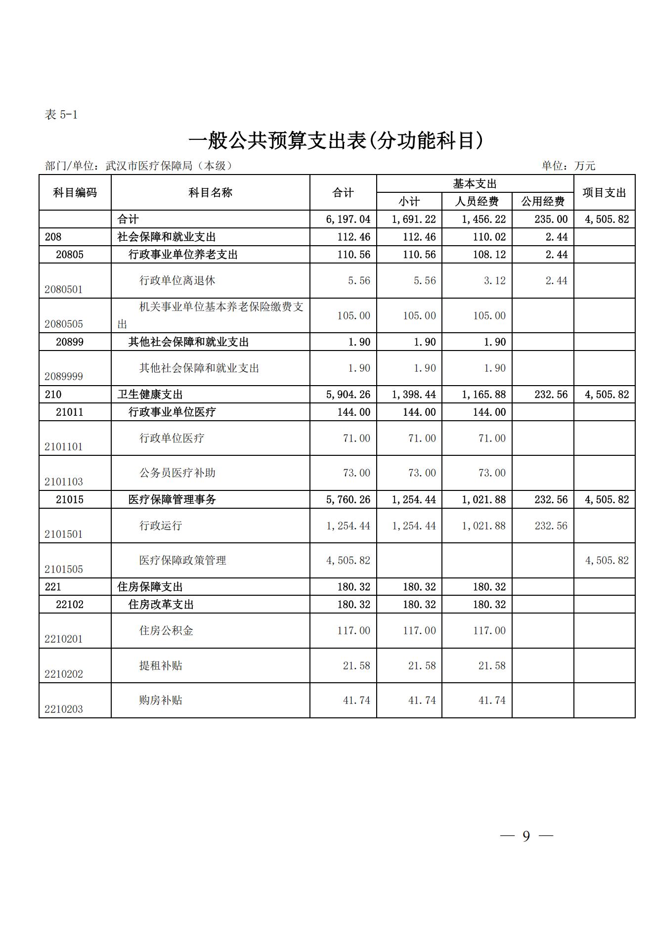 武汉市医疗保障局(本级)2025年预算公开