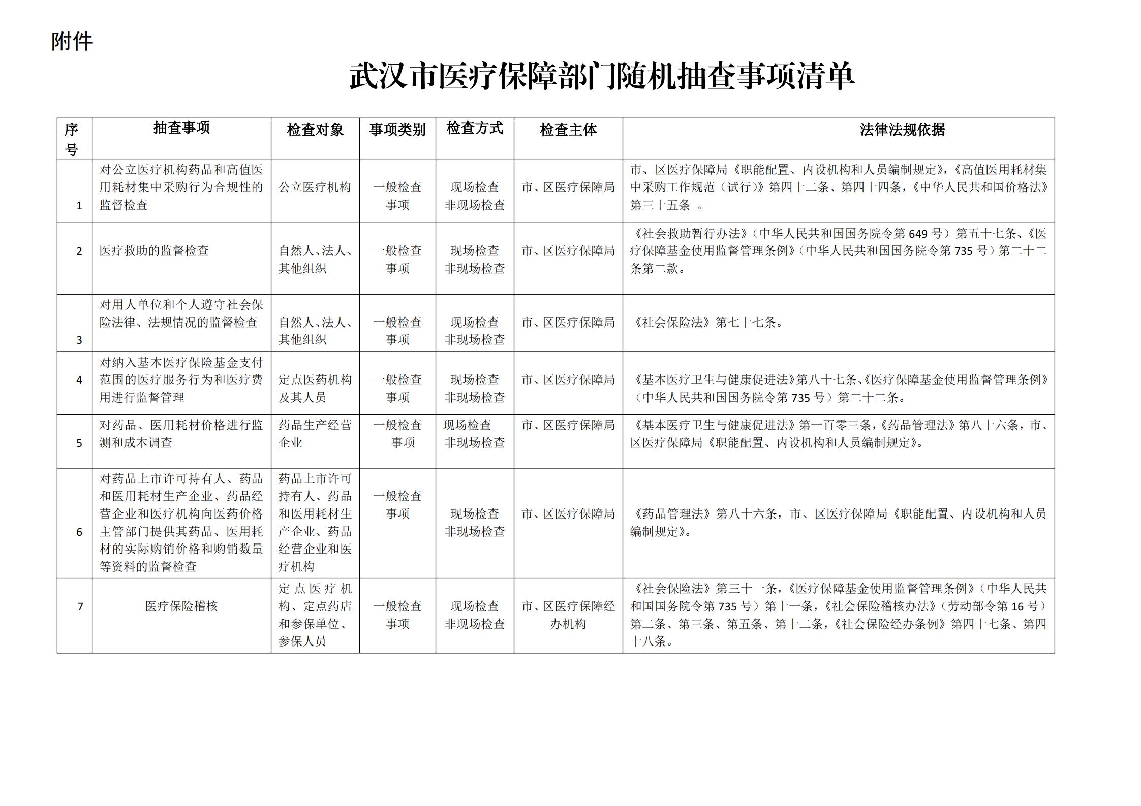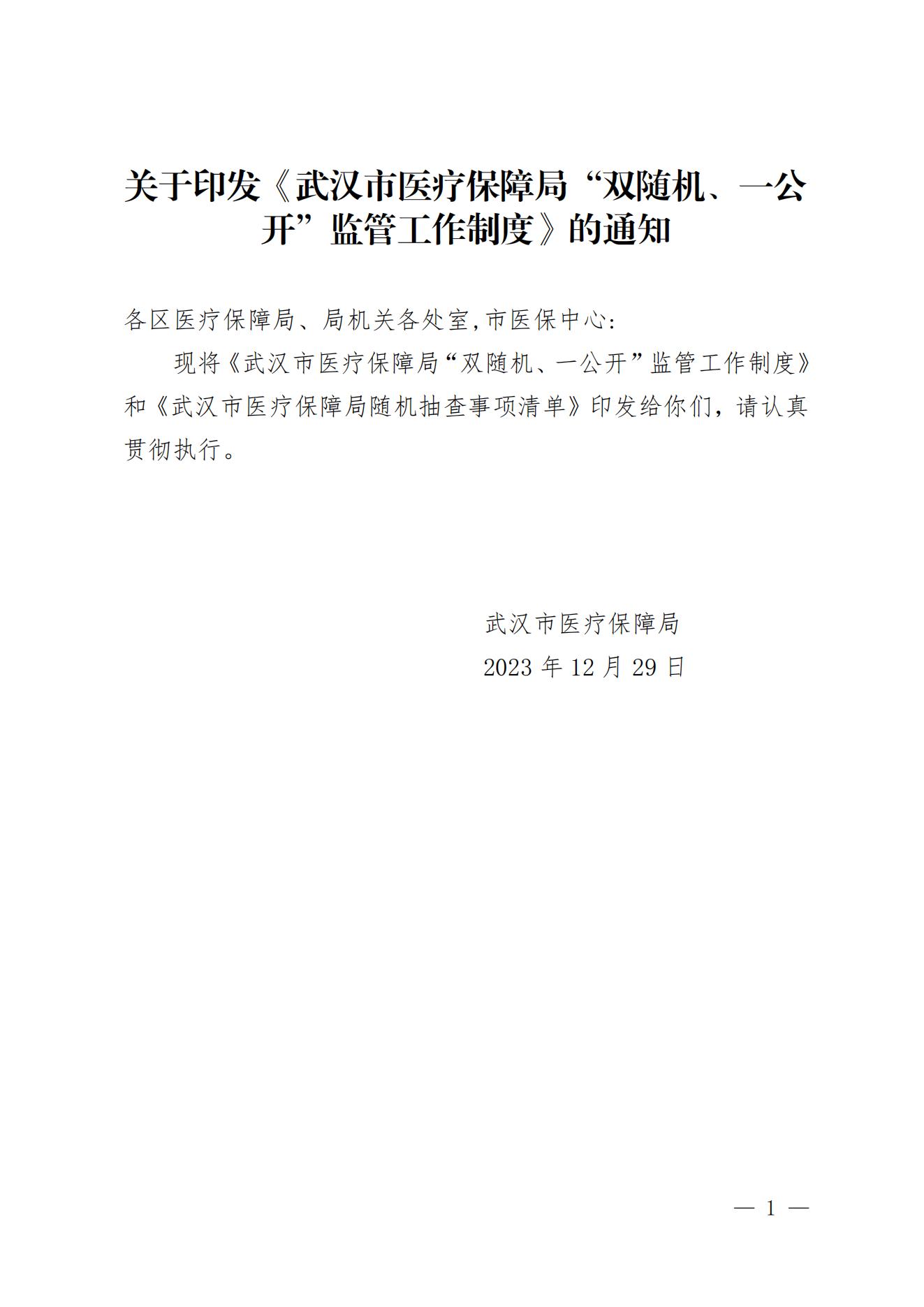 关于印发《武汉市医疗保障局“双随机、一公开”监管工作制度》的通知