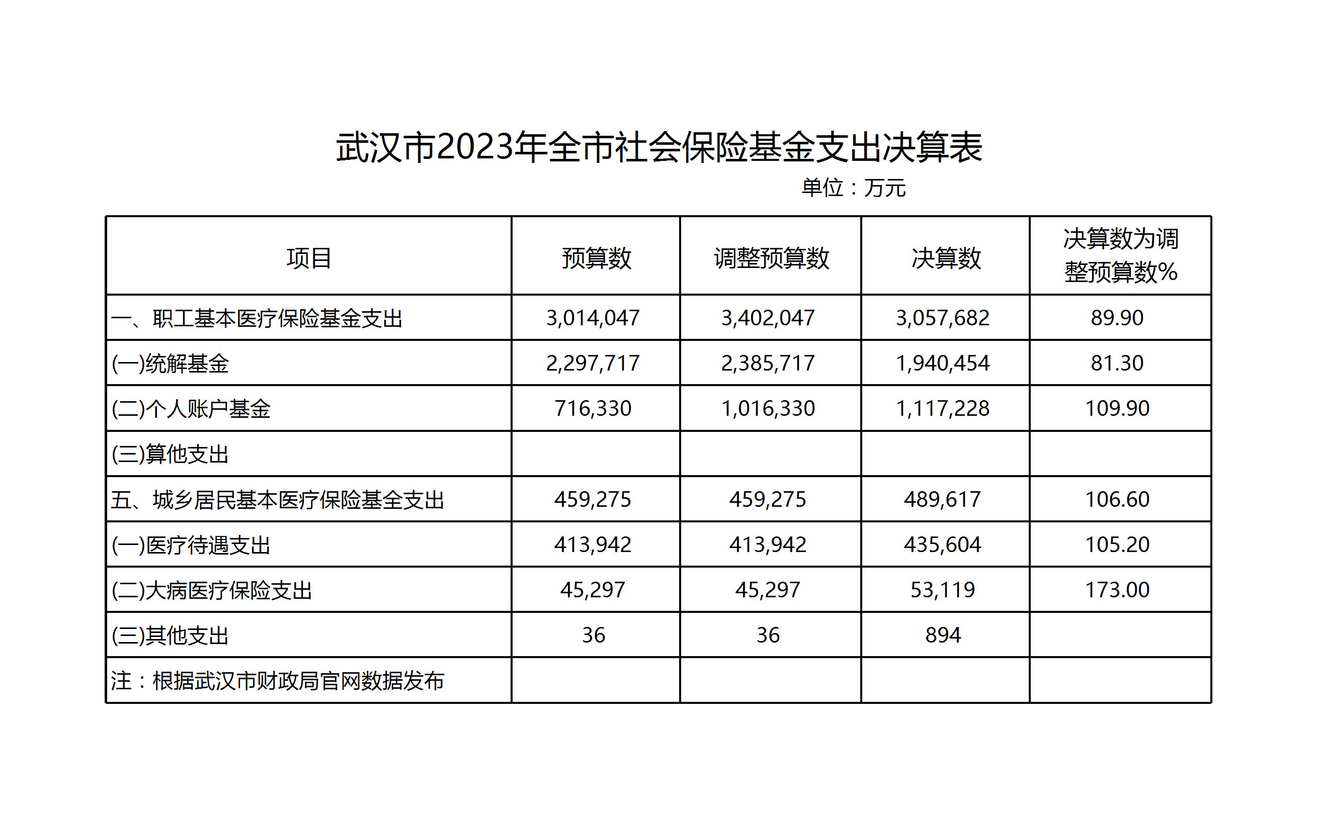 武汉市2023年全市社会保险基金支出决算表