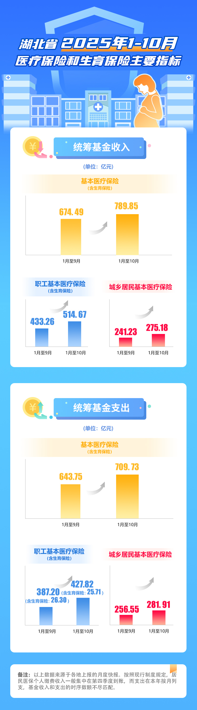 【数据图解】湖北省2025年10月基本医疗保险和生育保险主要指标