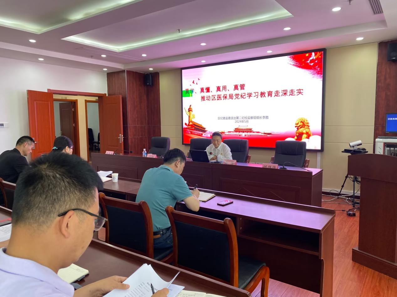 局党组成员、二级调研员方学孝传达党中央、省、市、区党纪学习教育会议精神,区纪委监委派出第二纪检监察组长李甦以《真学、真懂、真用、真管 推动区医保局党纪学习教育走深走实》进行专题辅导授课。