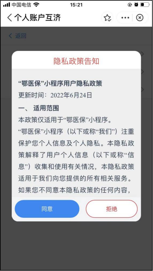 搜索“鄂医保”点击进入小程序,没有登录过的用户,首次使用小程序时,需要授权。