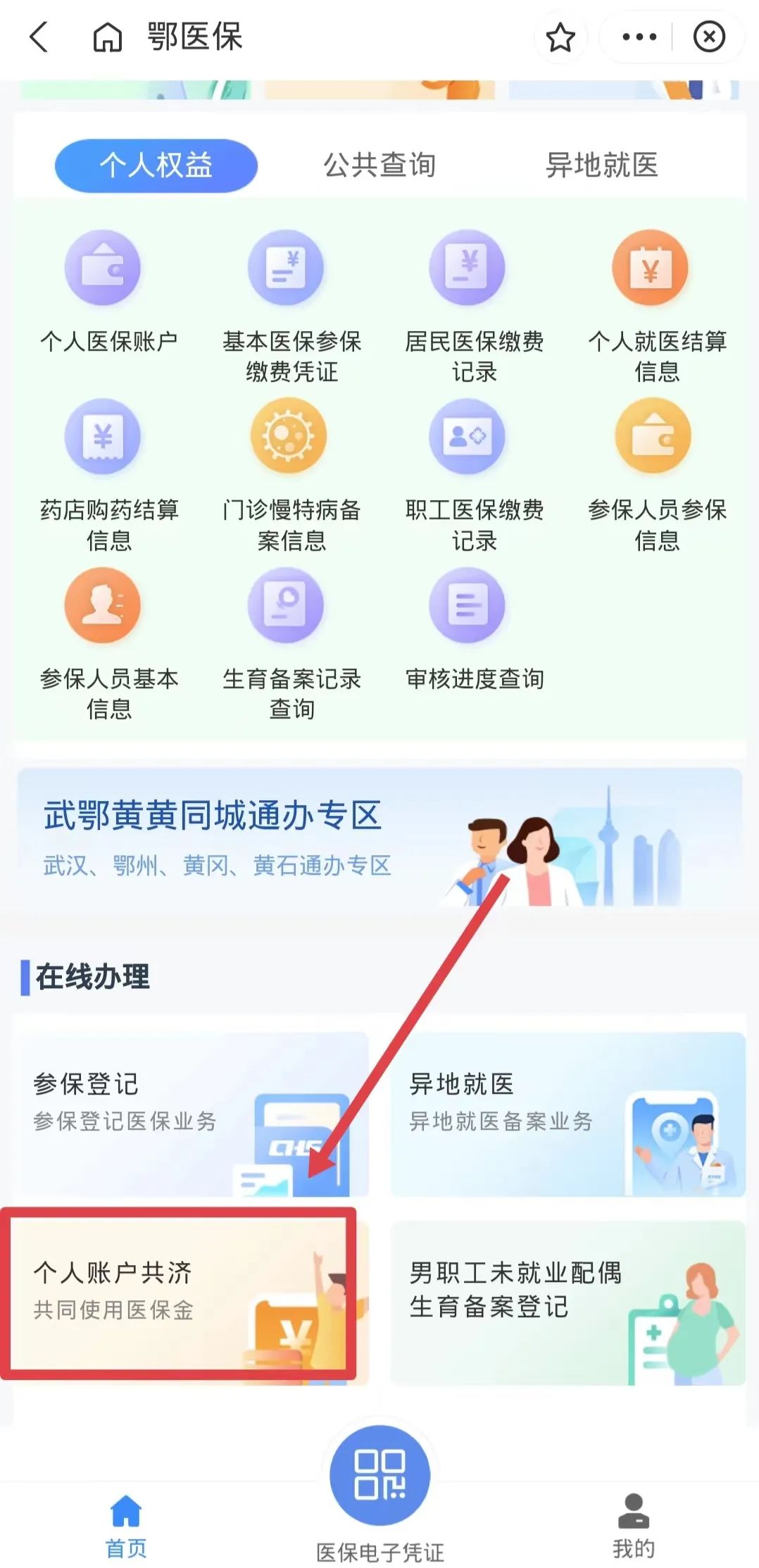 2、个人账户家庭共济仅支持武汉市市域范围内参保的职工和居民参保人员,跨统筹区参保(省内其他地区参保、省外参保)的不能互相共济。