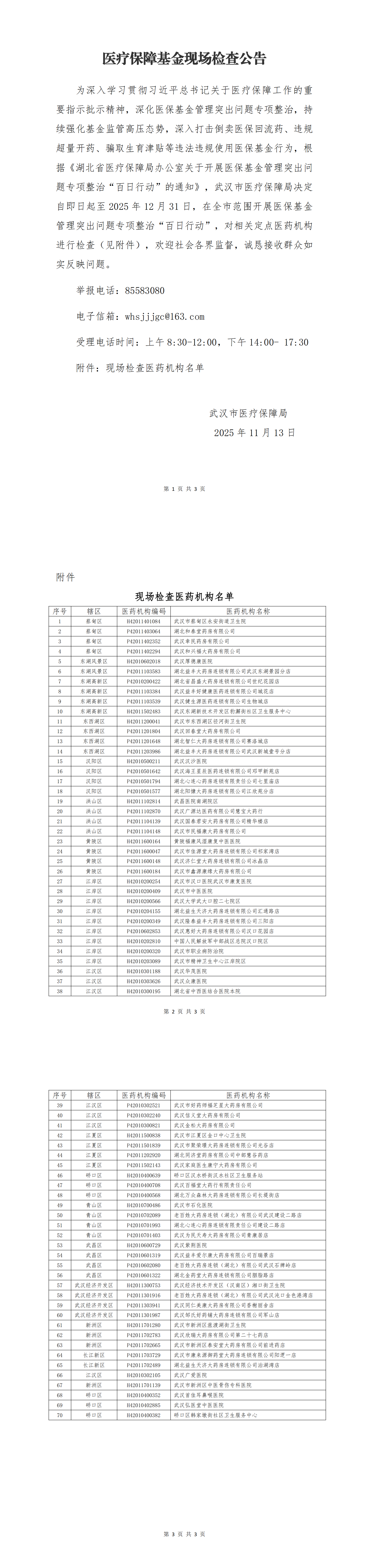 医疗保障基金现场检查公告