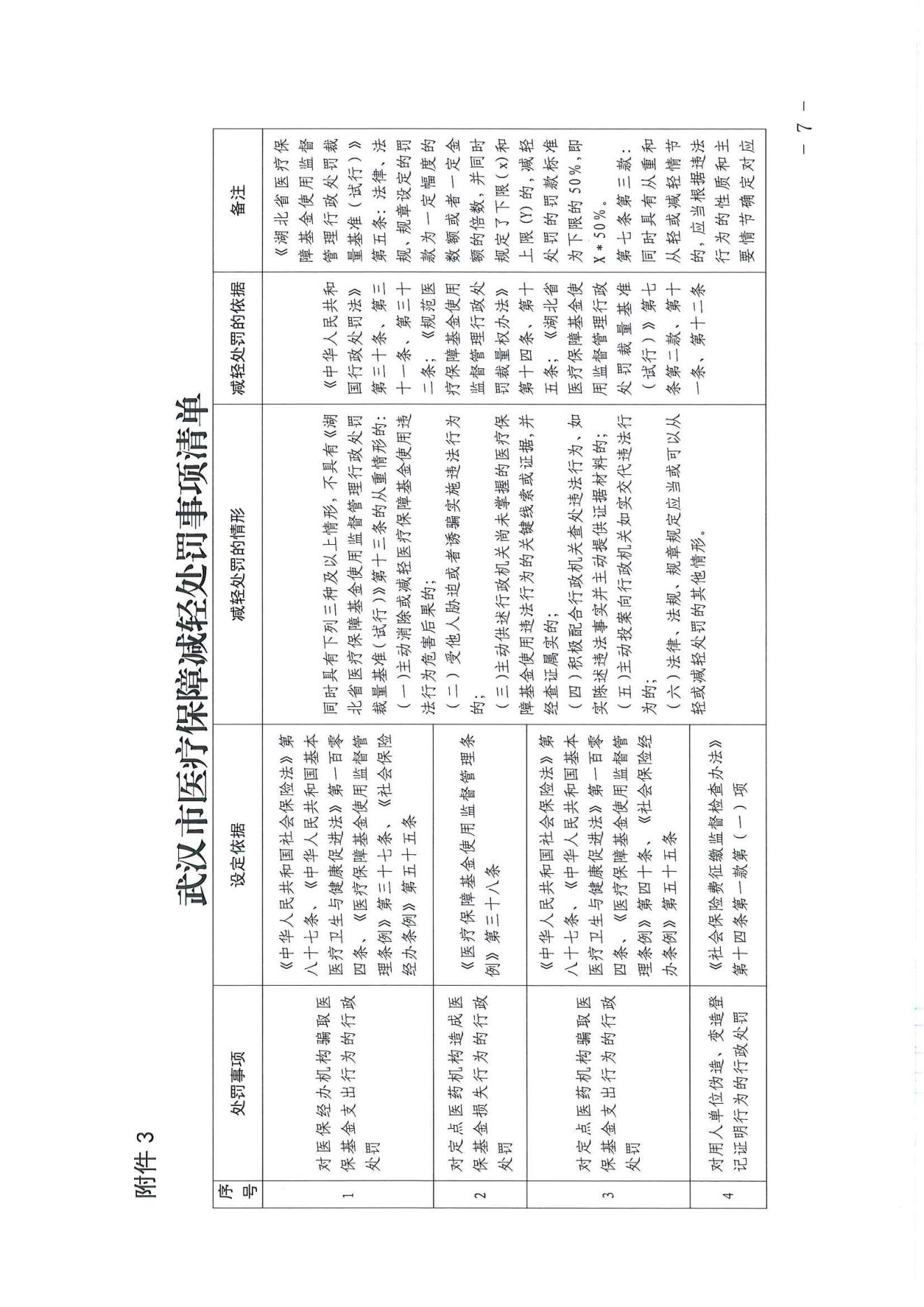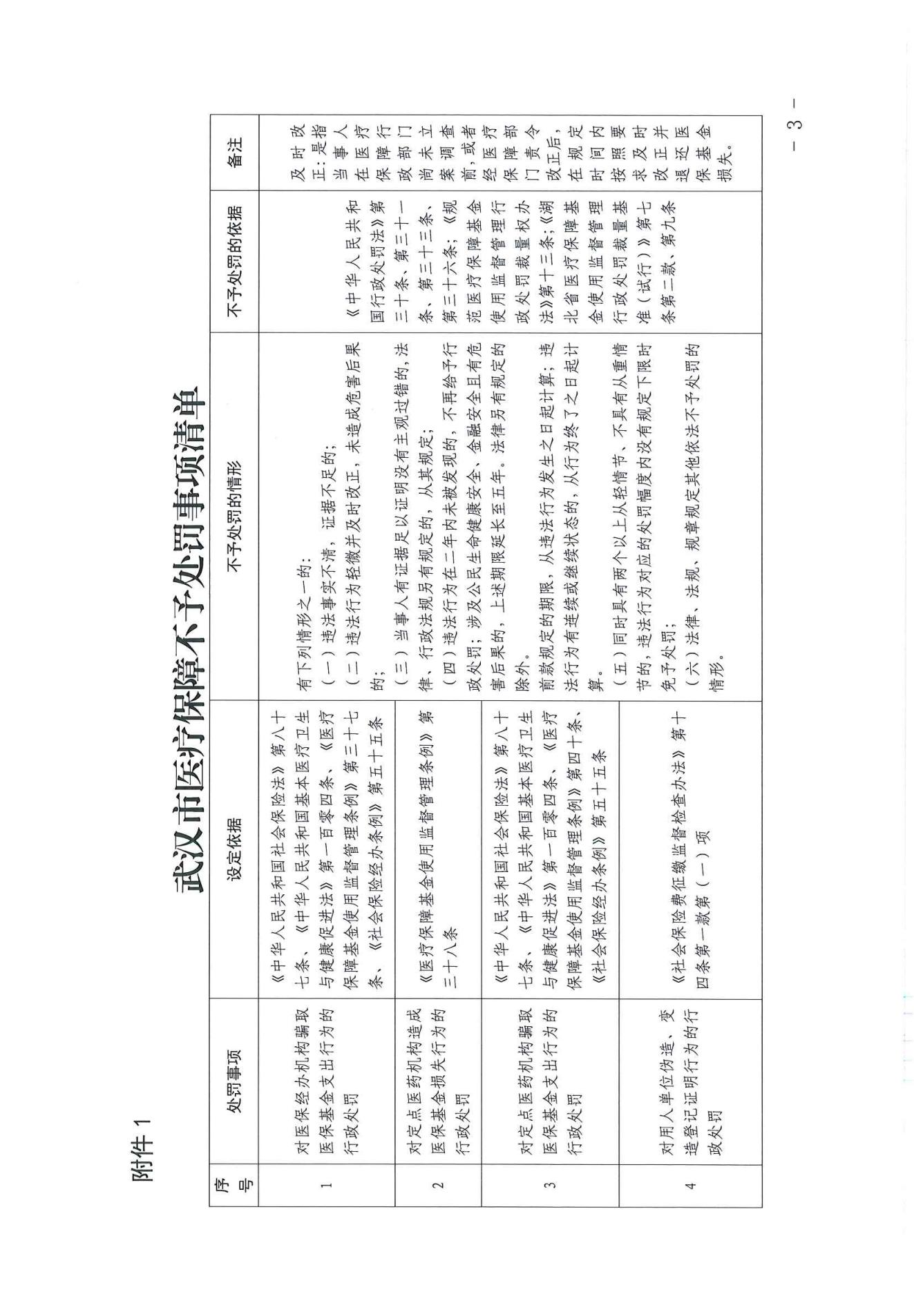 市医疗保障局关于印发武汉市医疗保障不予 处罚事项清单、从轻处罚事项清单、减轻处罚事项清单的通知